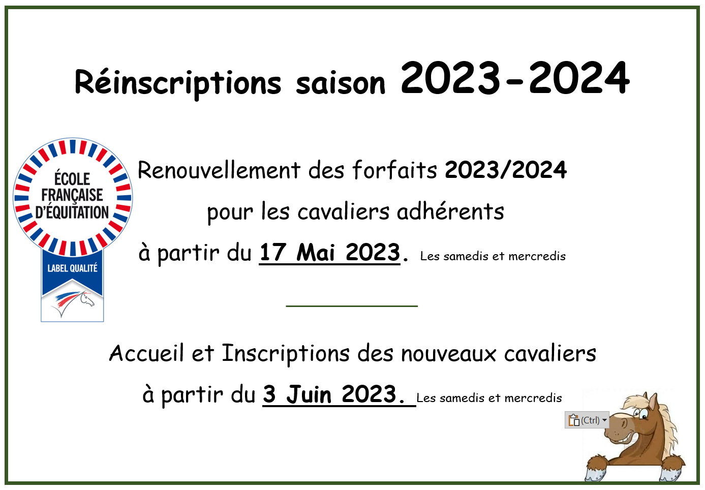 Galop 1 Devenir cavalier : Je suis sensibilisé au respect du poney / cheval, je me déplace au pas et au trot et je commence à galoper.