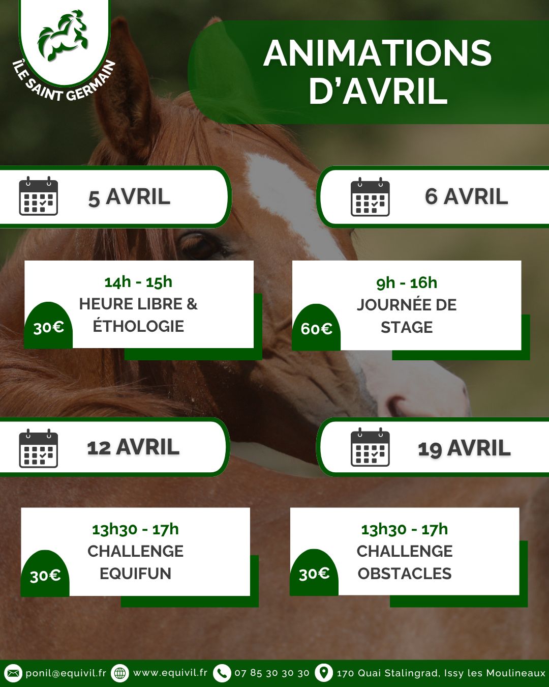Stages : à chaque vacances scolaires